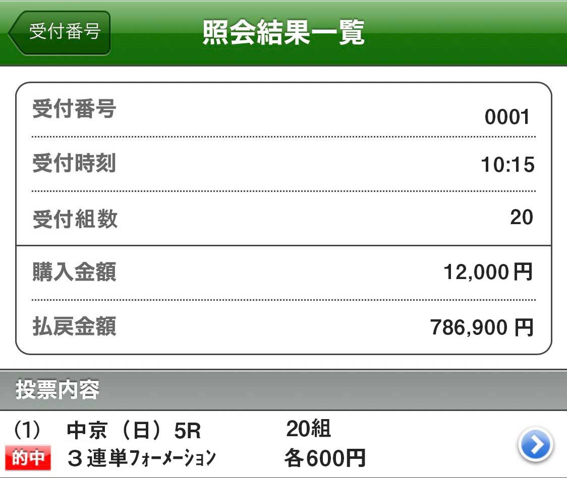 あとこちらです!松下マリカ14日日曜日中京5レース、786,900円獲得です!こっちの的中はバカでかい!